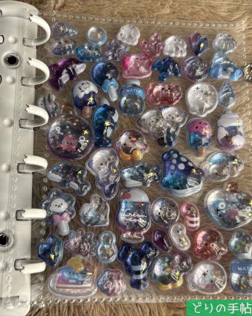 おはじきシール、タイルシール、カプセルシール、フレークシール、ウォーターシールなどなど。