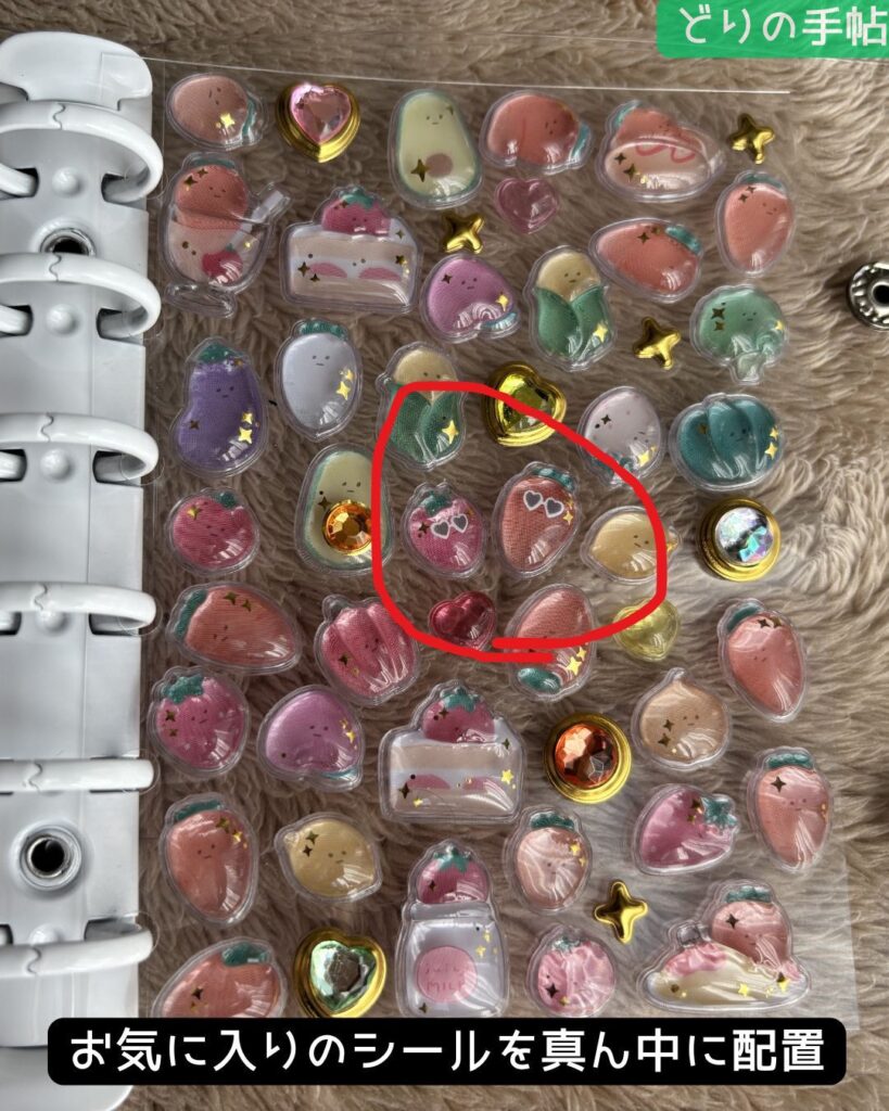 いちばん好きなシールは、真ん中に貼るのがおすすめです。