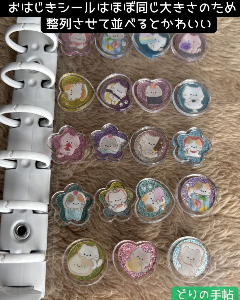 理由は、大きいシールは場所をとるため、詰めすぎるとごちゃごちゃするからです。